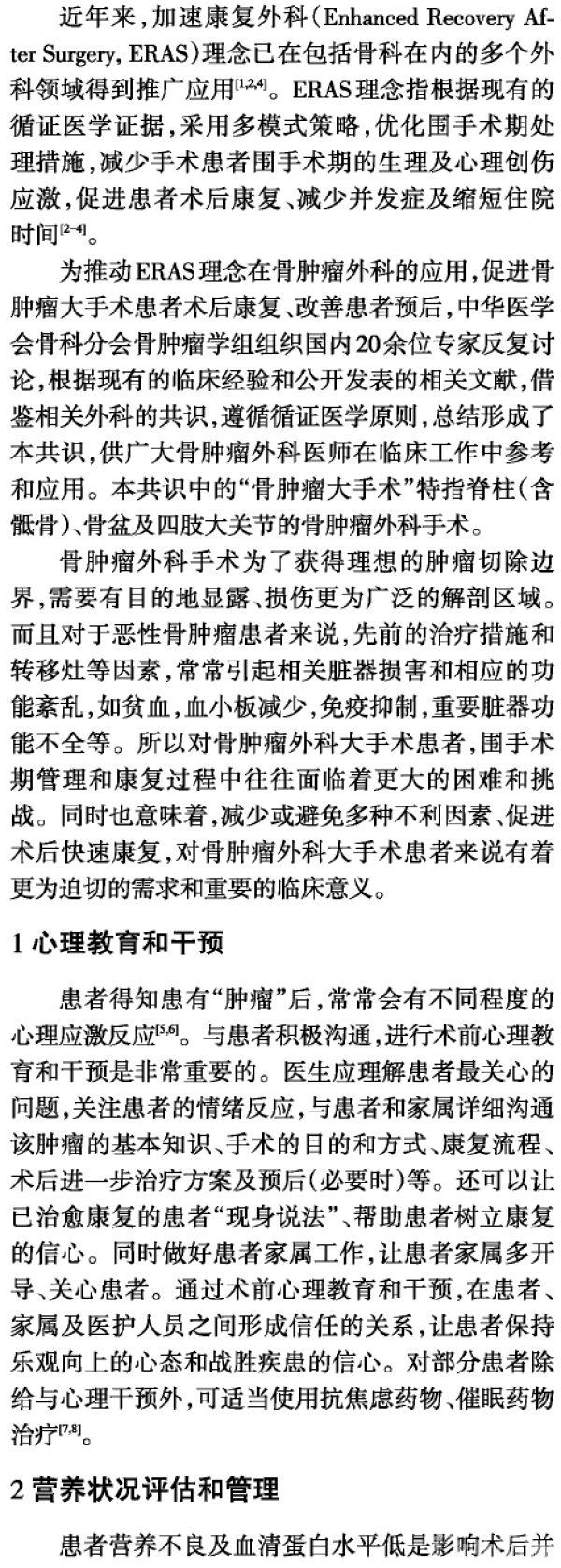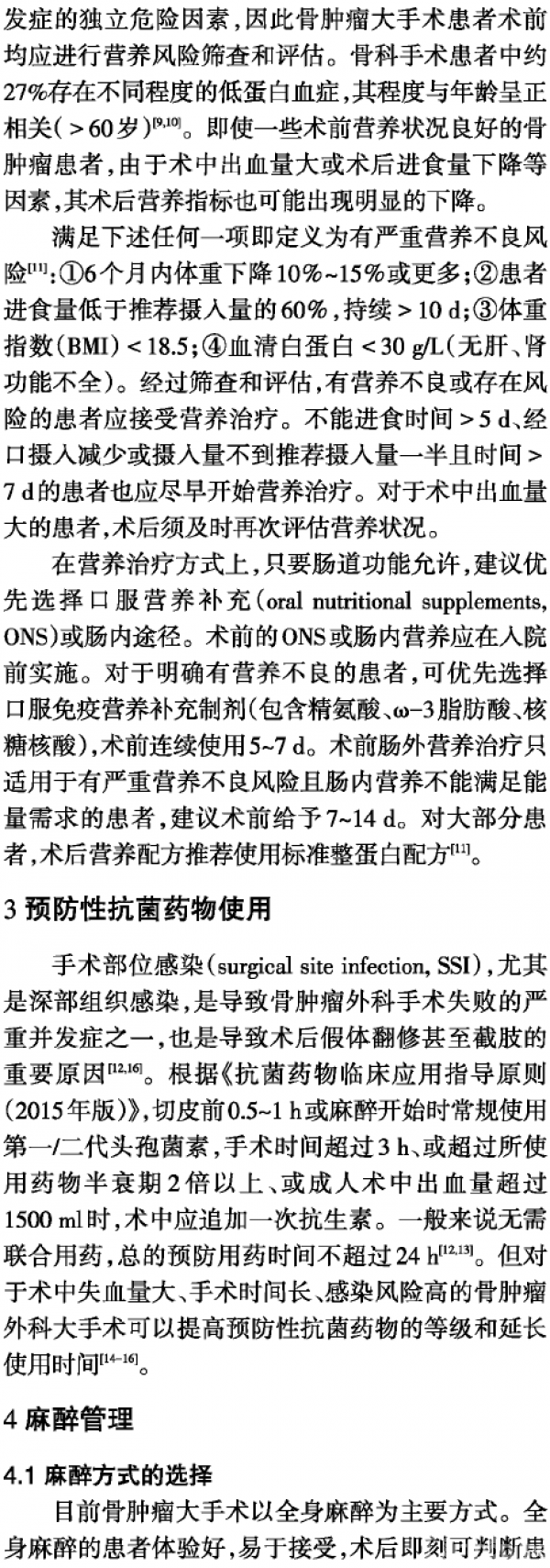 中国骨肿瘤大手术加速康复围手术期管理专家共识