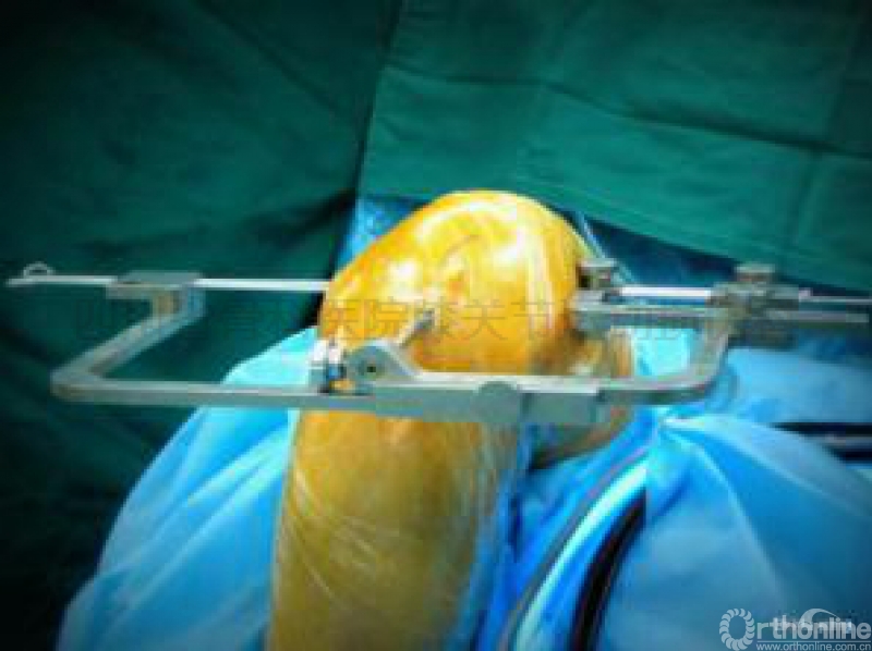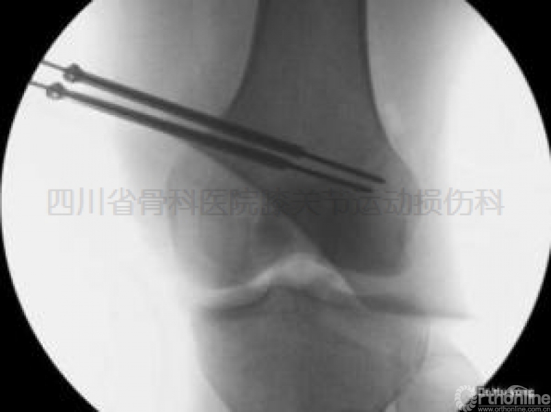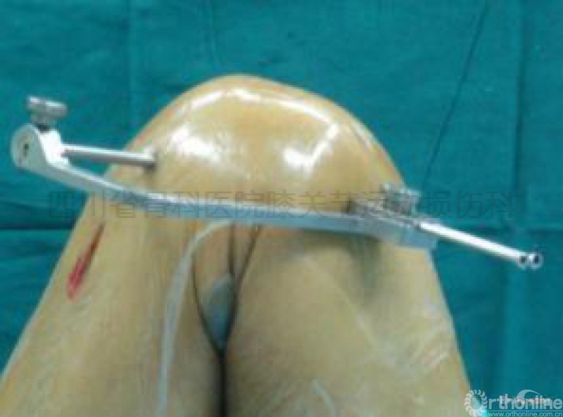 同年,作者在临床使用经胫骨隧道的RigidFix横穿股骨框架及配套导针和鞘管,采用逆向横穿技术实施临床手术(图示八)。