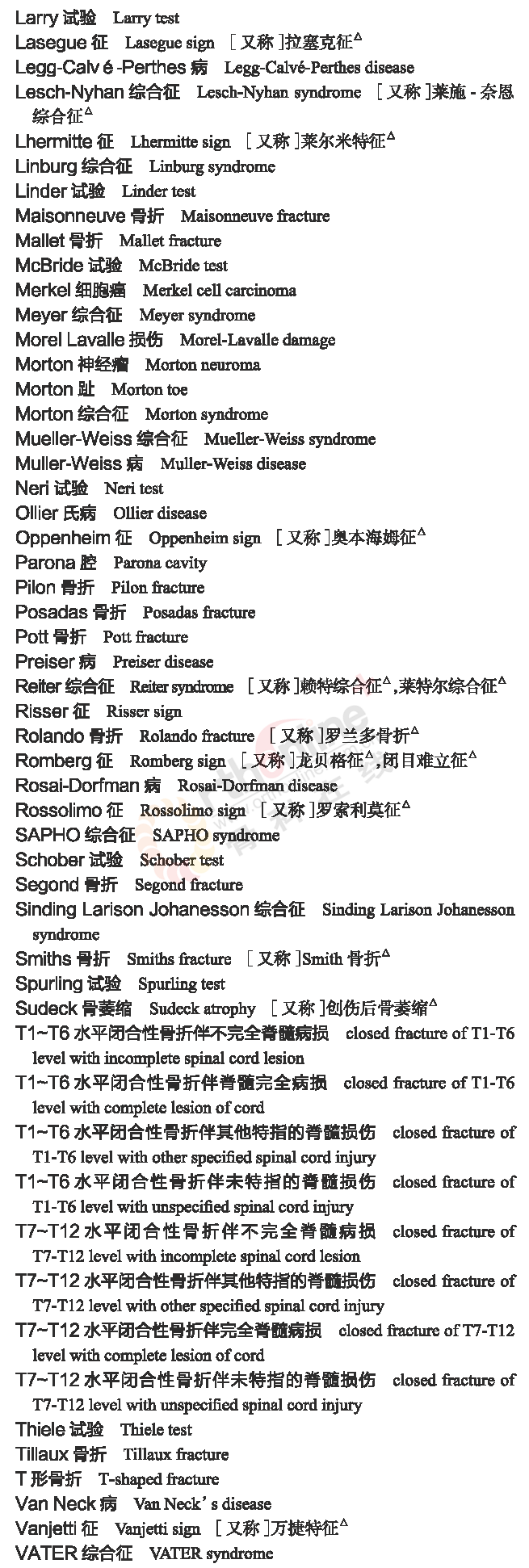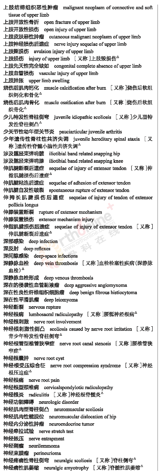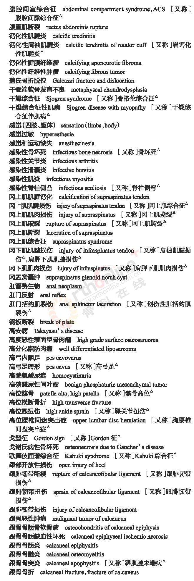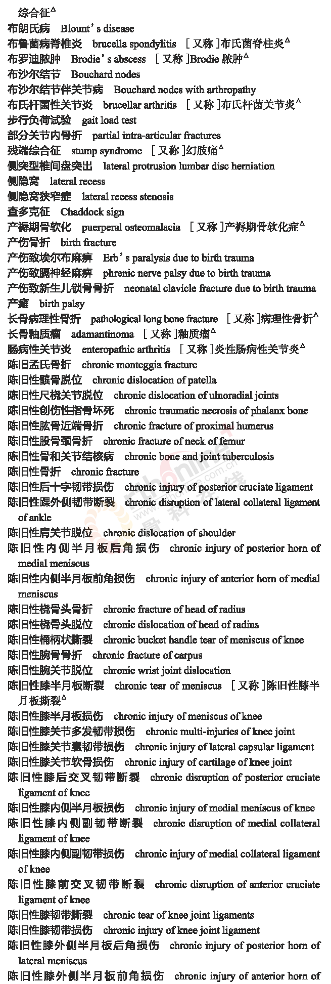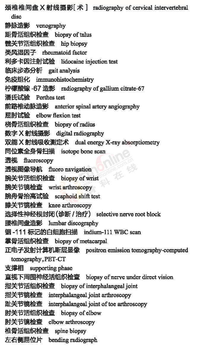 骨科常用临床医学名词