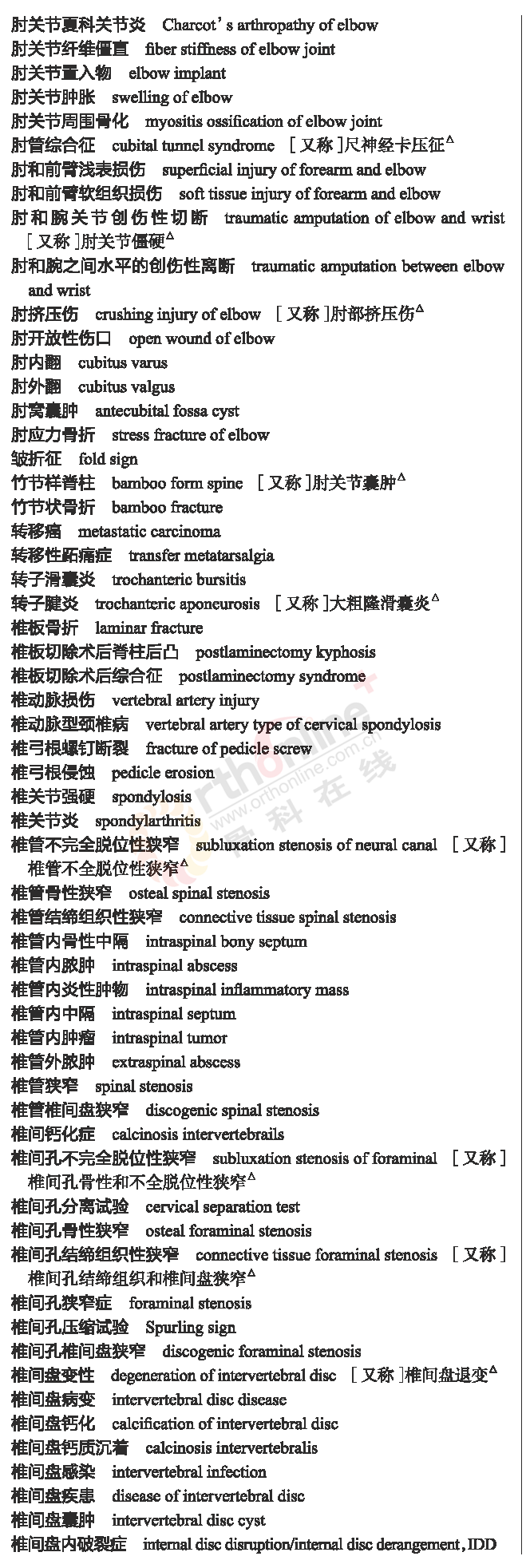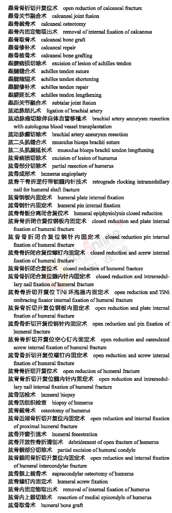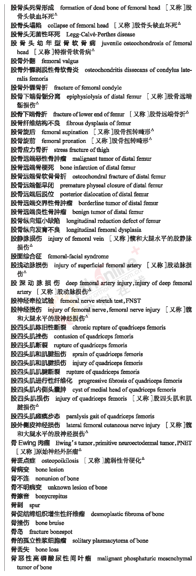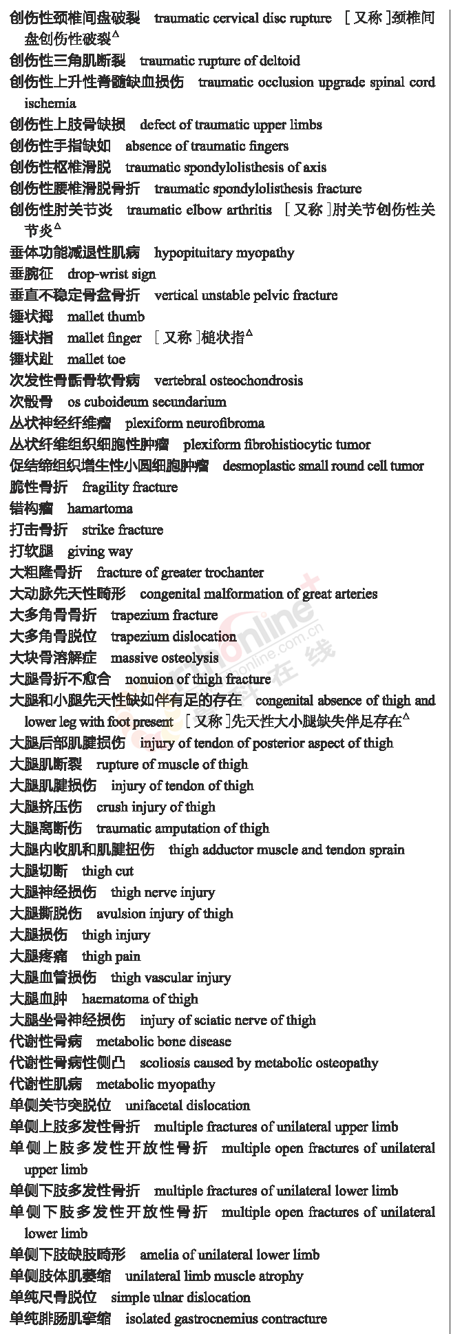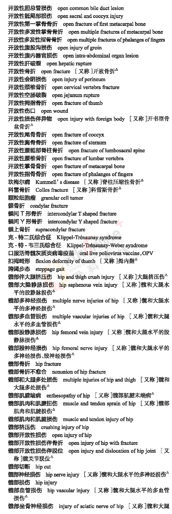 骨科常用临床医学名词