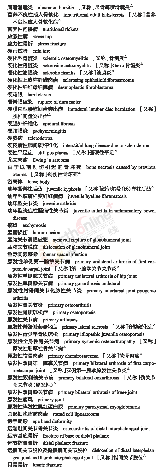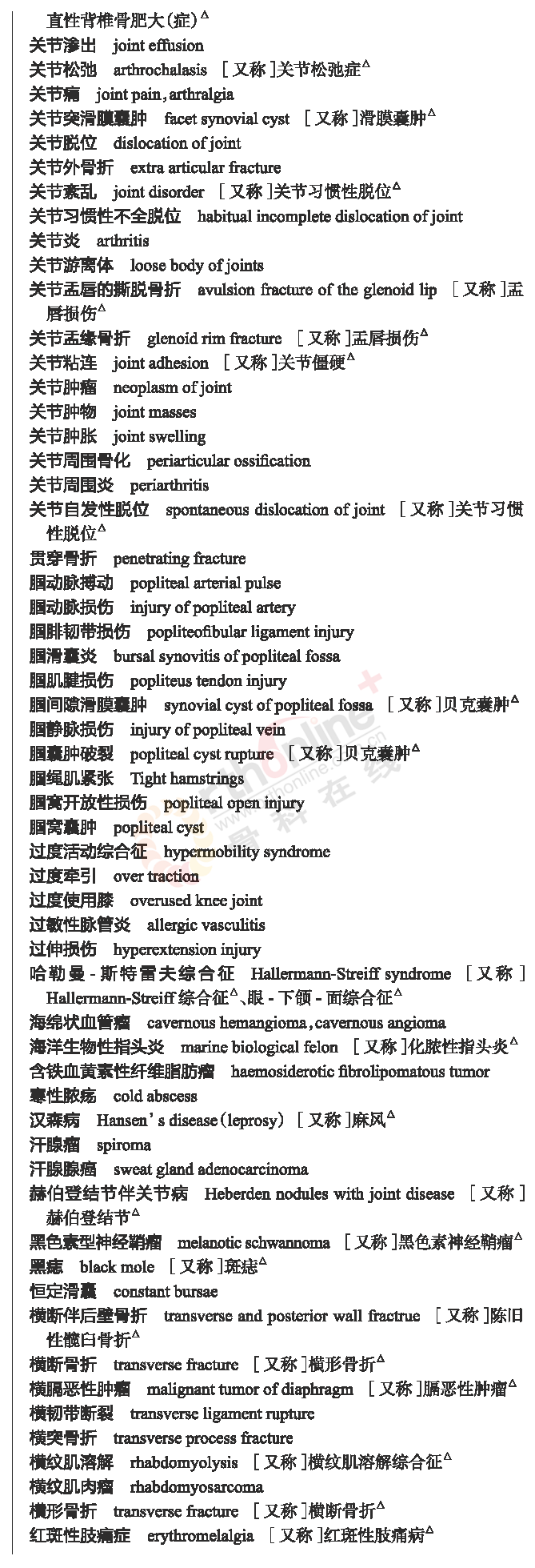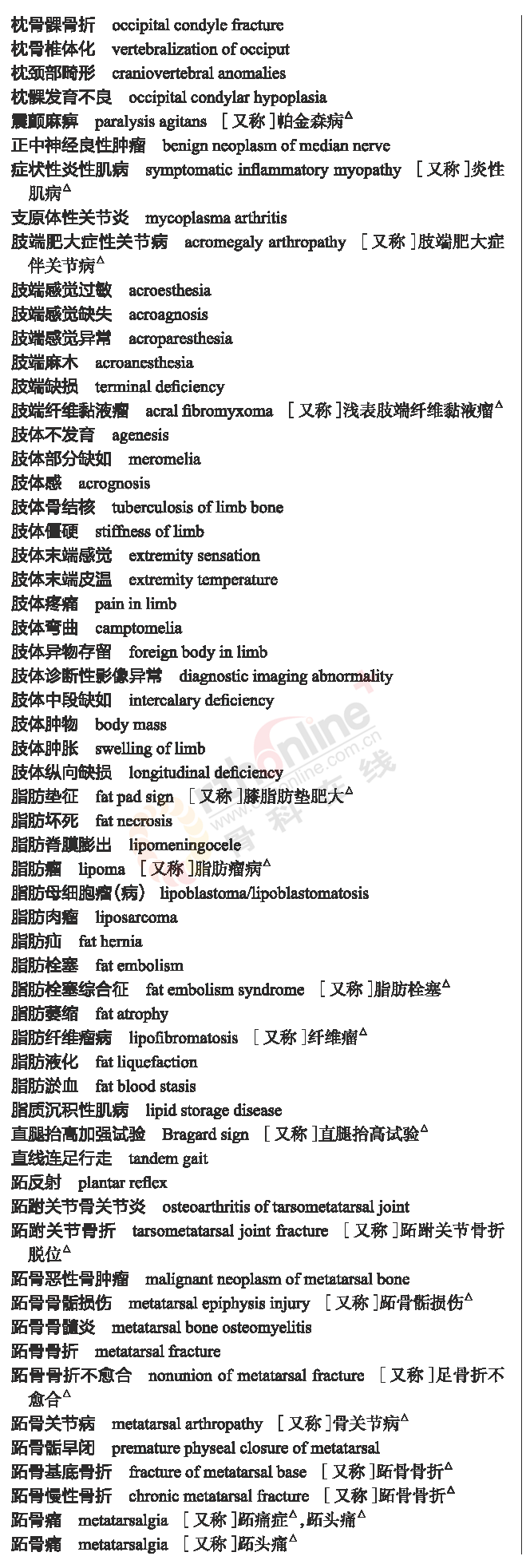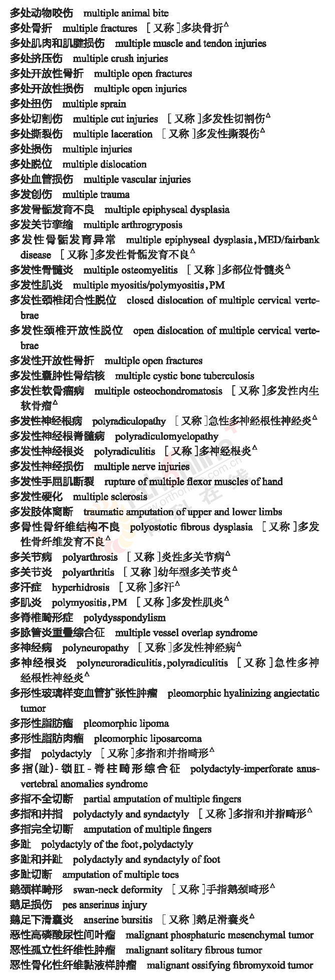 骨科常用临床医学名词