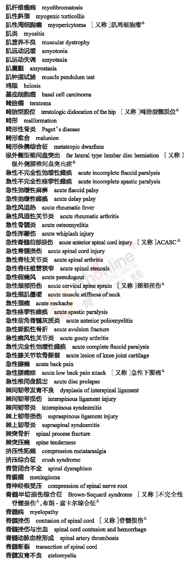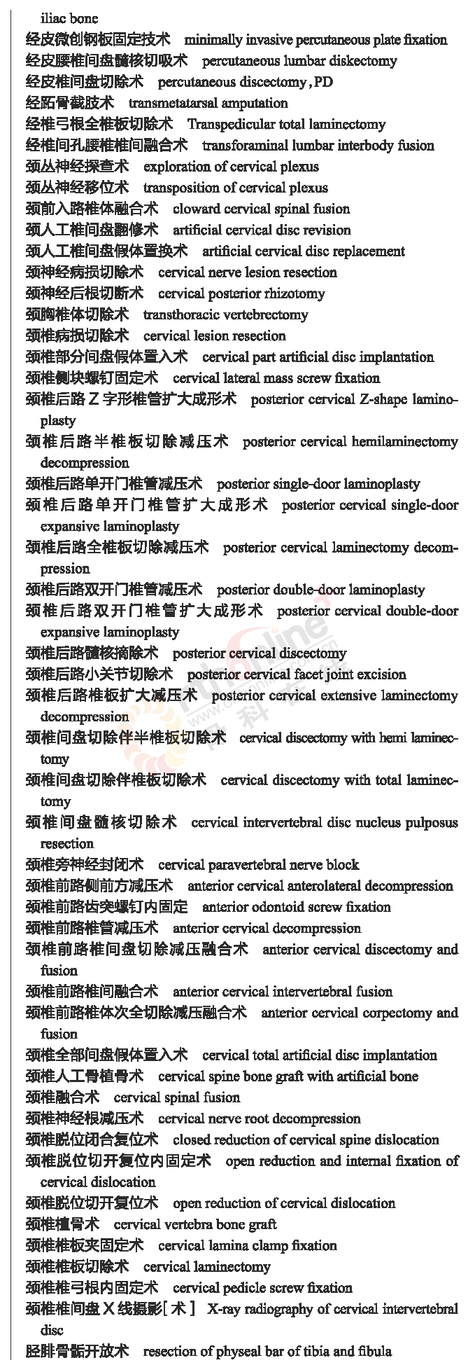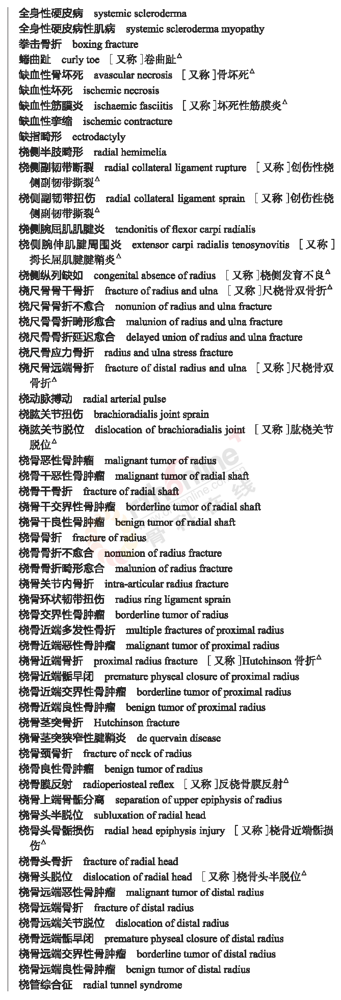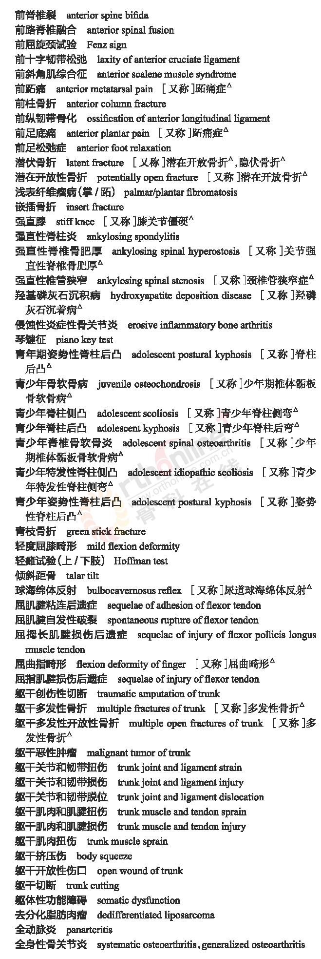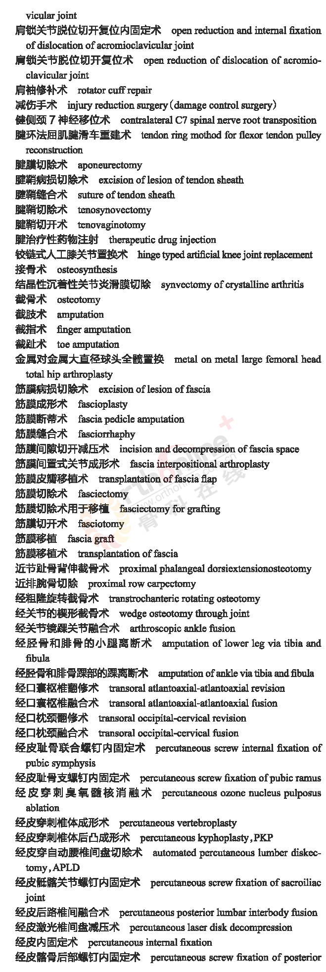 骨科常用临床医学名词