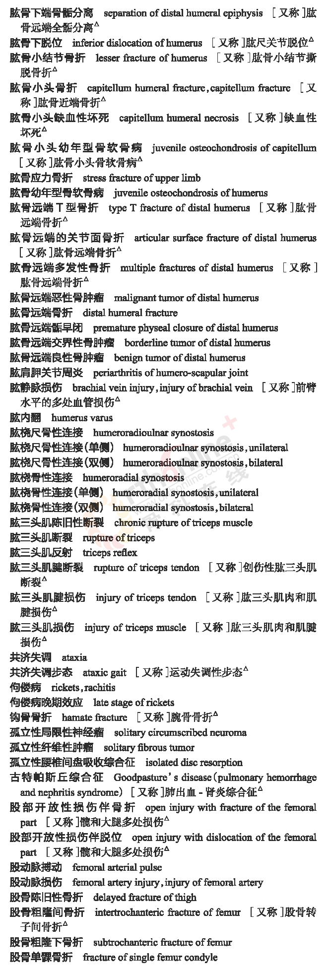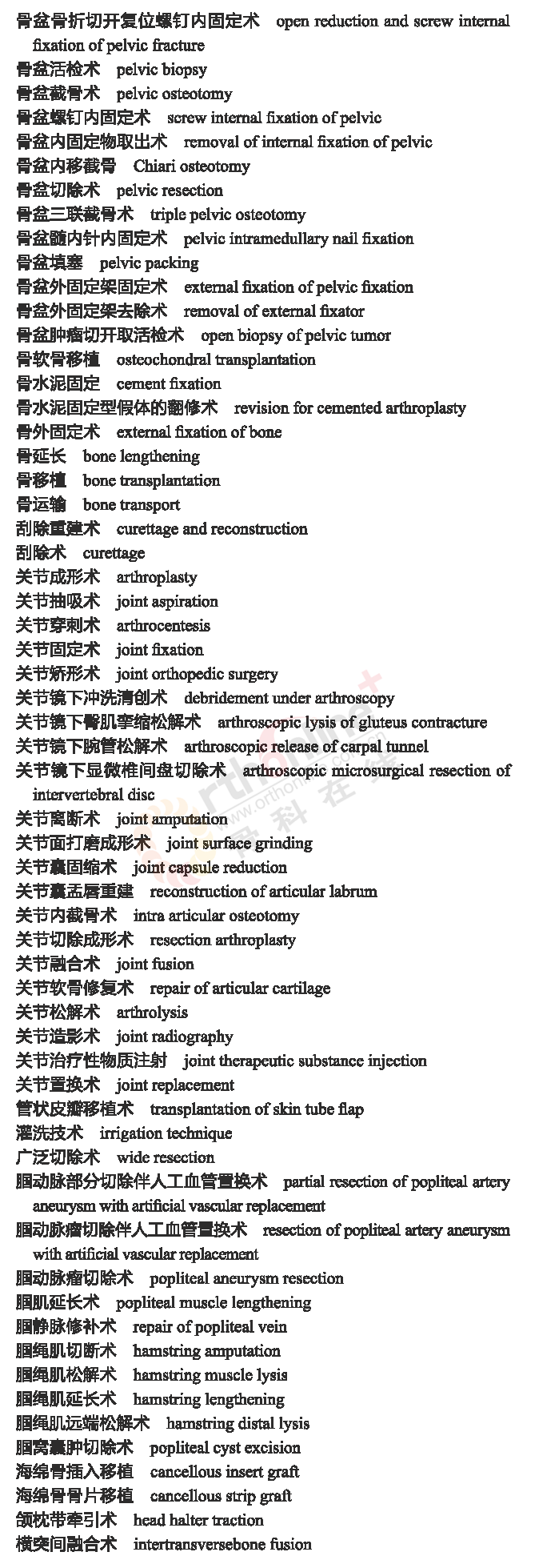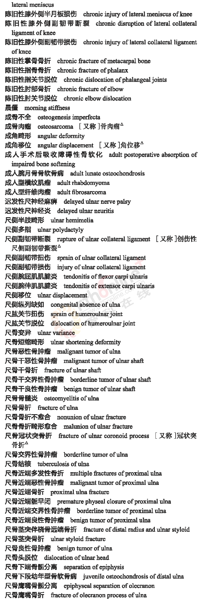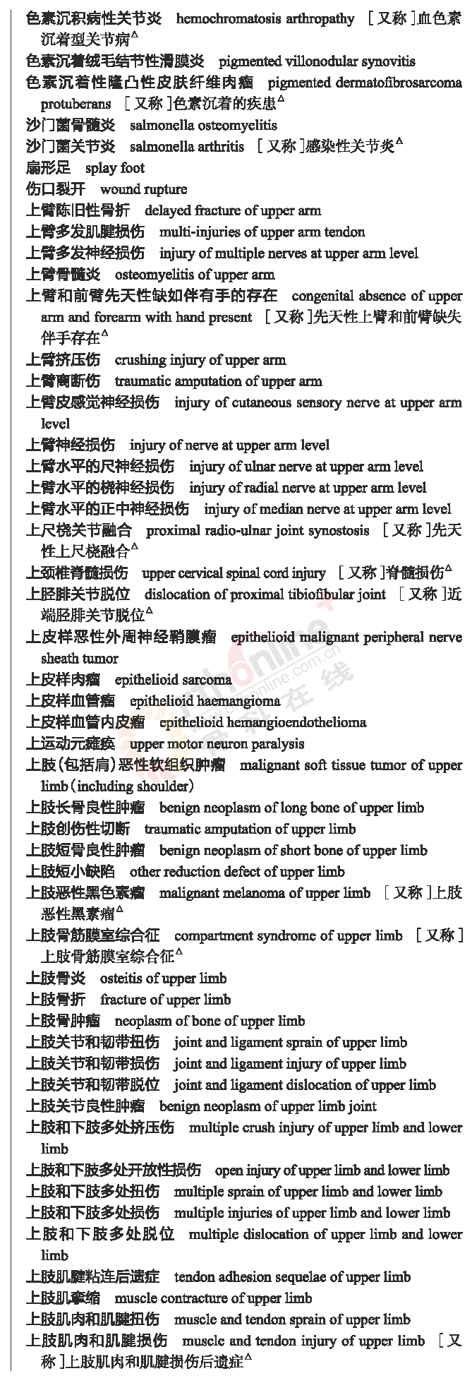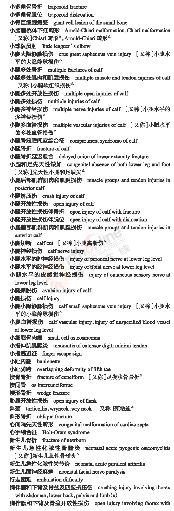 骨科常用临床医学名词