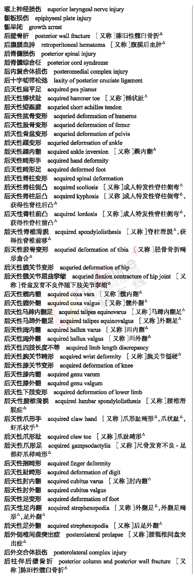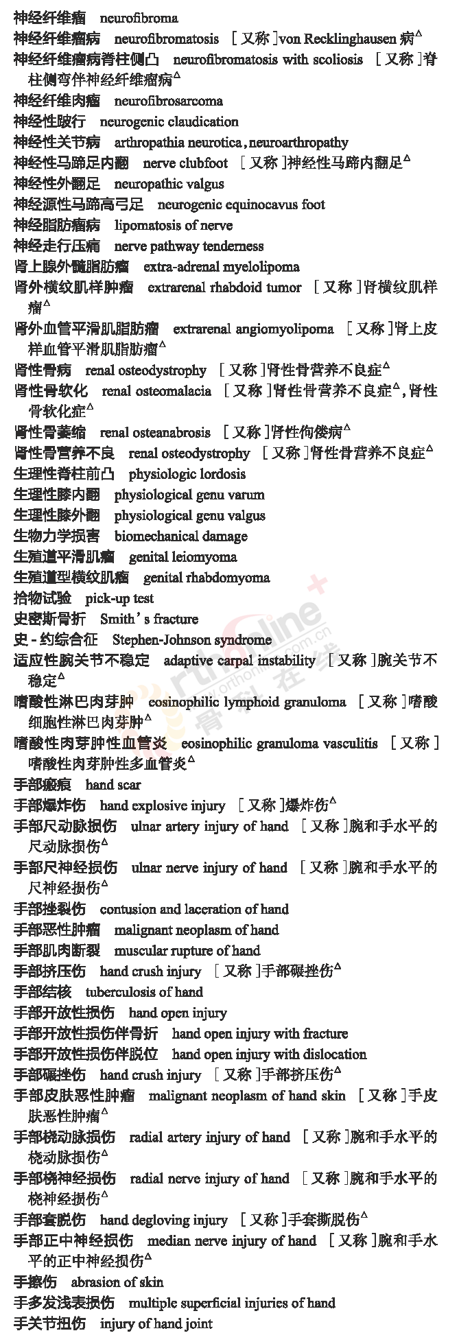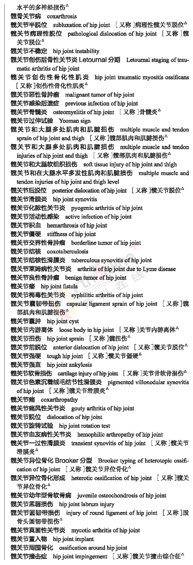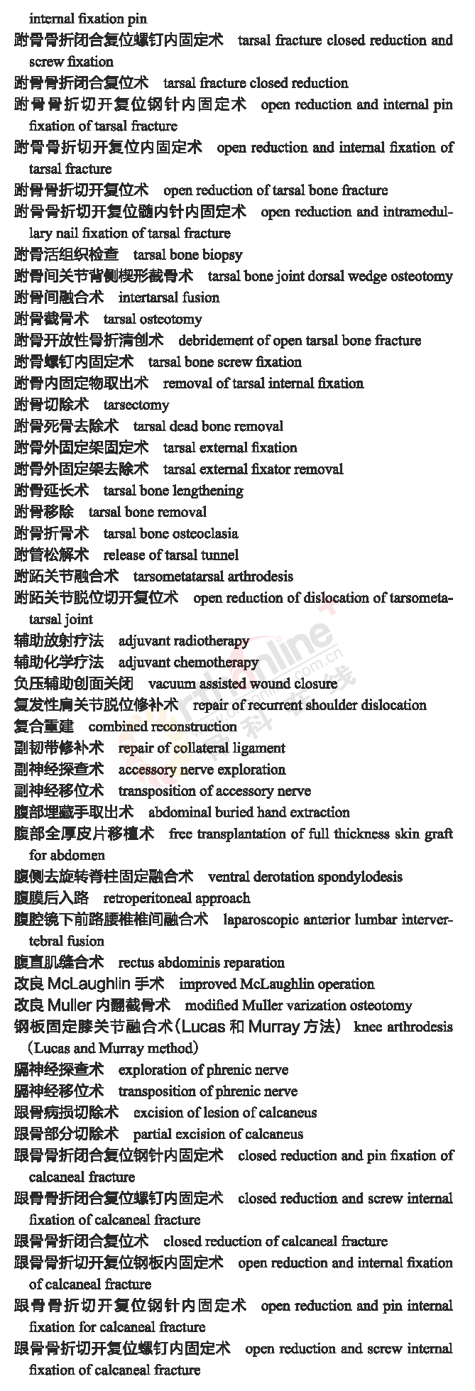 骨科常用临床医学名词