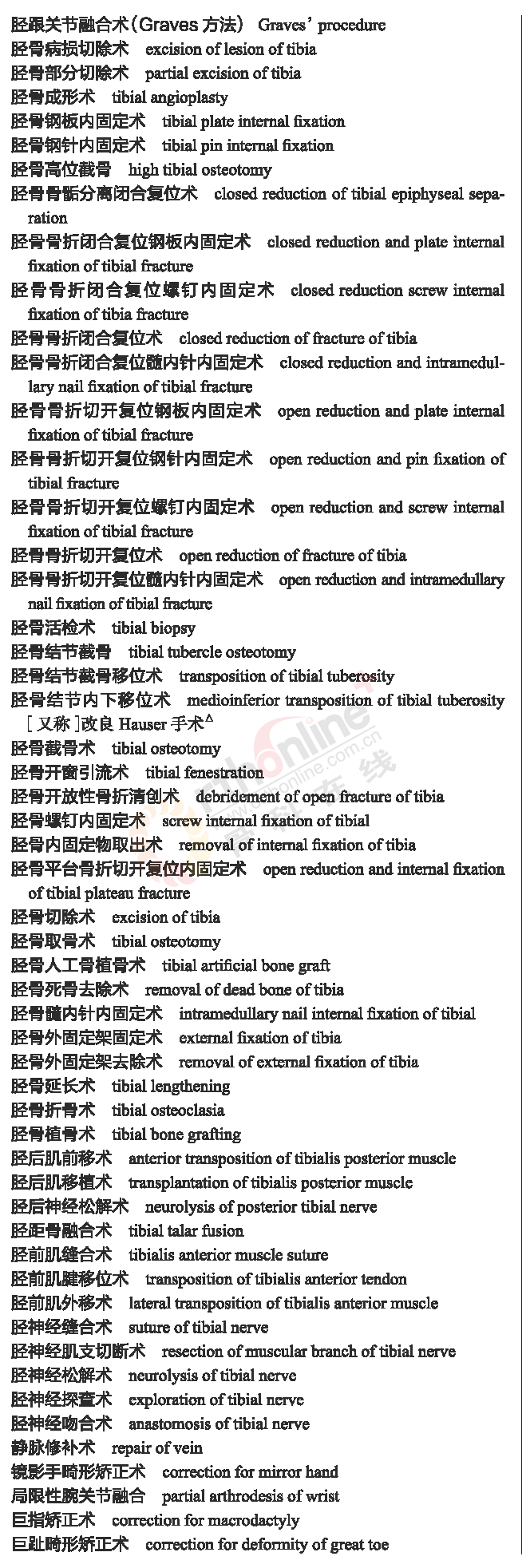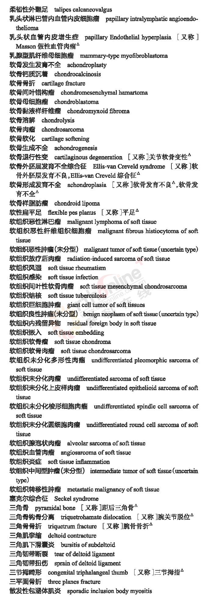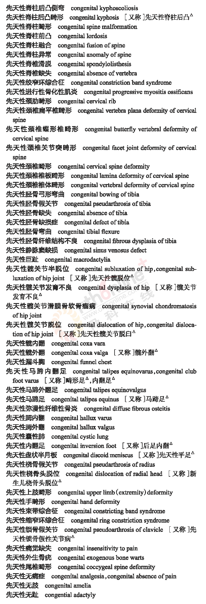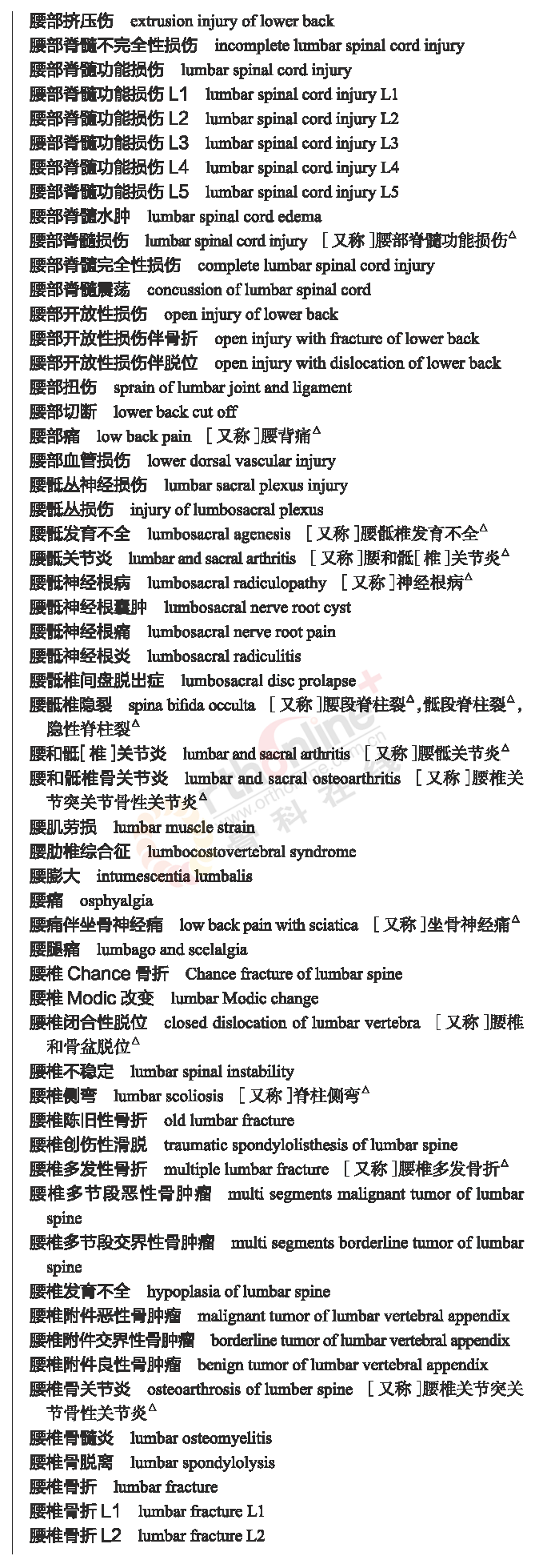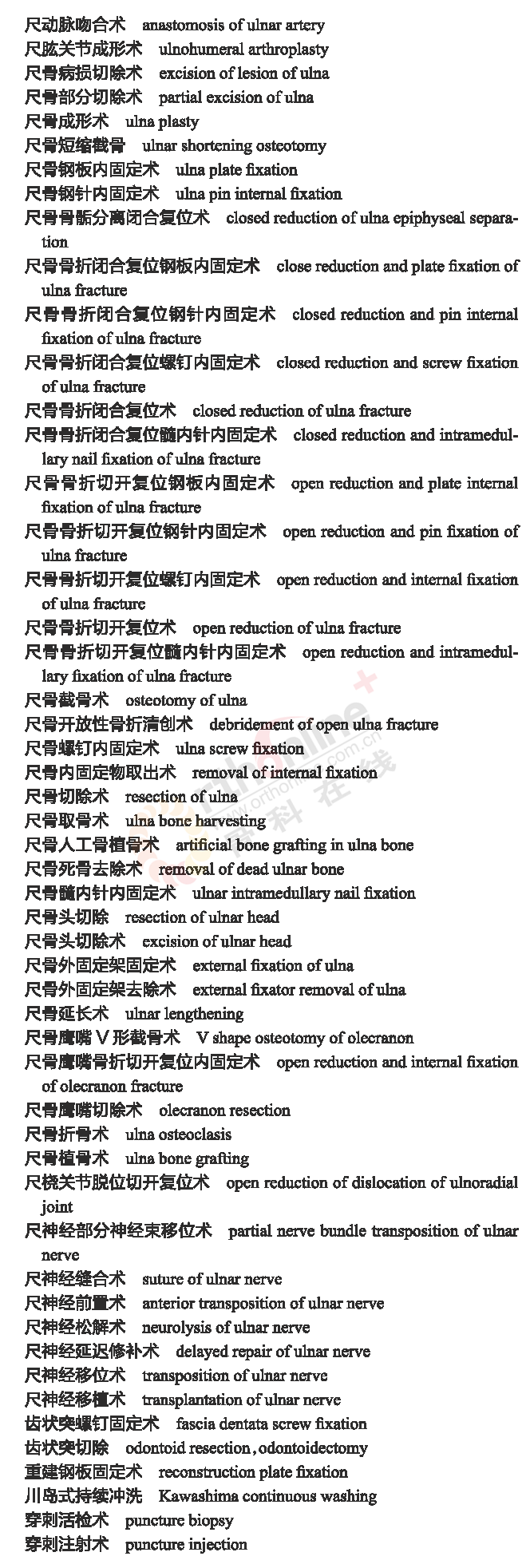骨科常用临床医学名词