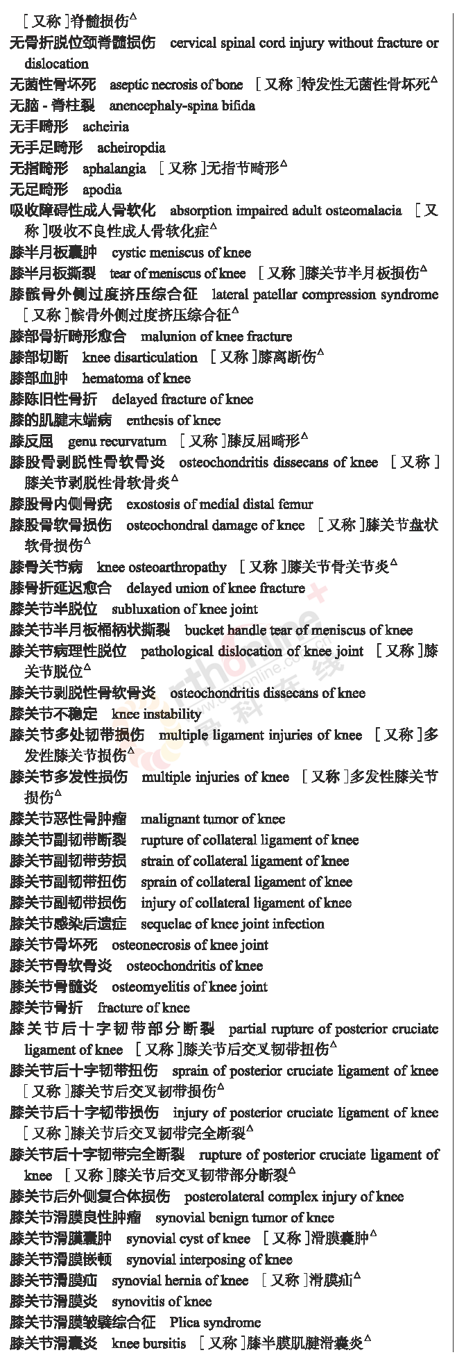 国家卫健委发布常用临床医学名词(2019年版骨科篇)