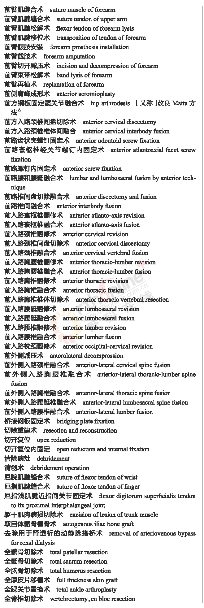 3.手术操作名词