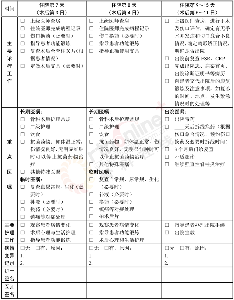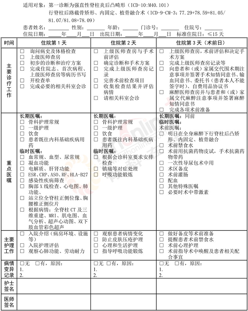 二、强直性脊柱炎后凸畸形临床路径表单