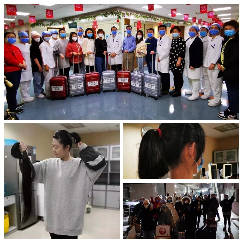 2月5日,武汉大学中南医院关节与运动医学科的护士们剪短秀发上一线。