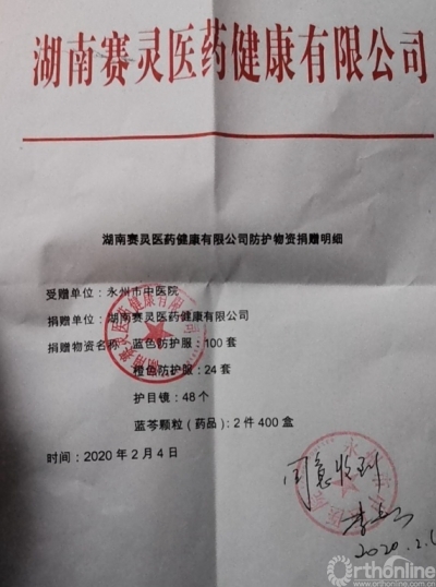 作为一家立足骨科产品的医药企业,赛灵集团在全国一心抗击新冠肺炎的战斗中没有置身事外。怀着拳拳赤诚之心,该公司尽己所能向湖南多家医院、云南相关单位和陕西部分医院捐赠抗疫物资:
