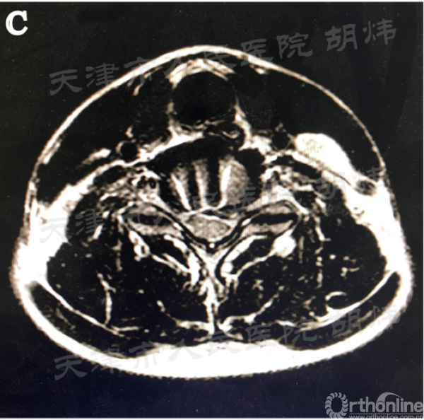 现病史:患者于入院前6个月无明显诱因出现颈肩部不适伴左上肢疼痛、麻木,疼痛由颈部放射到左手中指,不伴有头晕、恶心、呕吐等症状,予以颈椎牵引、口服神经营养药物等治疗后,症状略有缓解,后症状反复发作。入院前1周患者打篮球后,上述症状明显加重,严重影响日常生活,为此患者就诊于天津市人民医院并住院治疗。患者自发病以来无低热、盗汗,无明显消瘦,饮食可,睡眠可,二便正常。