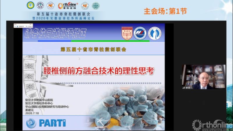 志合者,不以山海为远。2020年7月18日,第五届十省市脊柱微创联会暨2020年安徽省脊柱外科高峰论坛在三国故地——安徽省合肥市召开。因新型冠状病毒肺炎疫情的原因,该会议通过线上形式举行,并由骨科在线进行全程直播,其中参与授课讨论的专家、学者超过100位,在线观看人数更是高达23055人次。