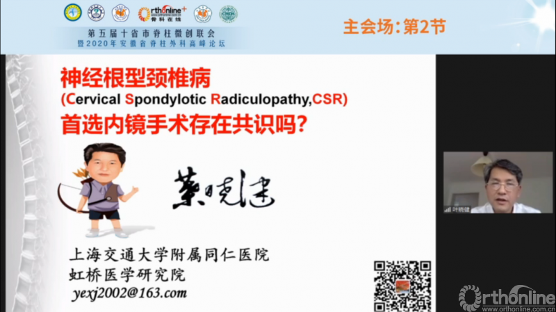 叶晓健教授回答了“神经根型颈椎病(CSR)术式选择首选内镜手术能作为共识吗?”的问题,他对比了各类神经根型颈椎病手术选择的优劣,给临床医生以启发;对于CSR的治疗,后路内镜创伤小、并发症少,而ACDF对于椎间高度恢复好、稳定性好。