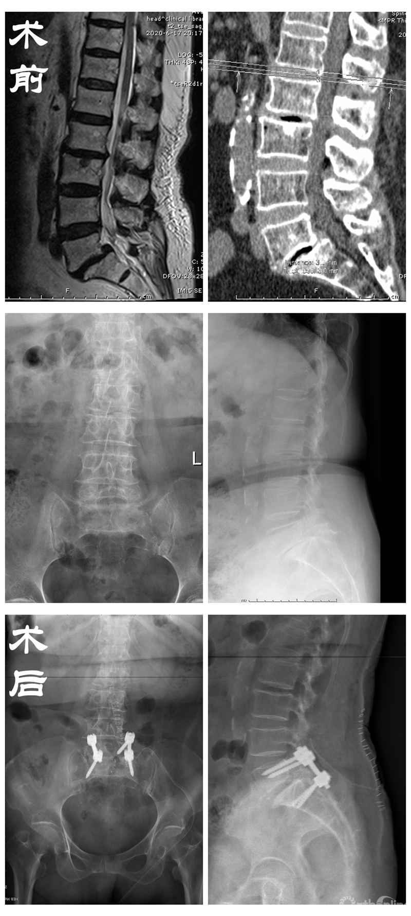 在备受折磨的患者苦苦央求下,丁文元教授为解决患者病痛,立即召集多科室进行会诊,在确认患者的心、肺、脑功能可以负担手术及麻醉后,为患者进行了腰椎切开复位固定融合术,术后患者腰腿疼缓解,日常活动均可自理。