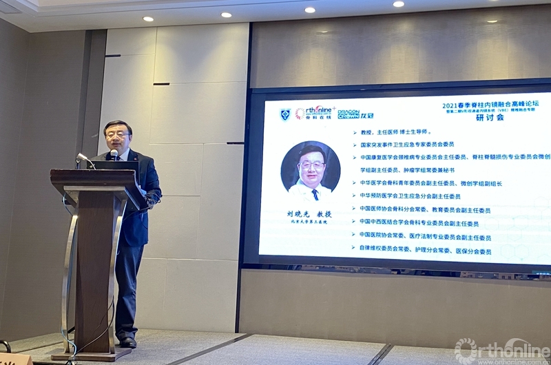 在当天的学术课程由刘晓光教授拉开序幕。他从脊柱微创手术的定义到当下技术的发展趋势,深入浅出地将脊柱微创融合的现状进行了系统性的回顾与总结,认为微创手术是一项脊柱外科医生都应掌握的技术,并要遵循微创腰椎融合术式选择的基本原则,为患者提供更好的治疗。同时,刘教授指出当前脊柱内镜融合仍然存在一定挑战,鼓励具有自主知识产权的医疗器械创新,更好地推动脊柱内镜融合技术的发展。