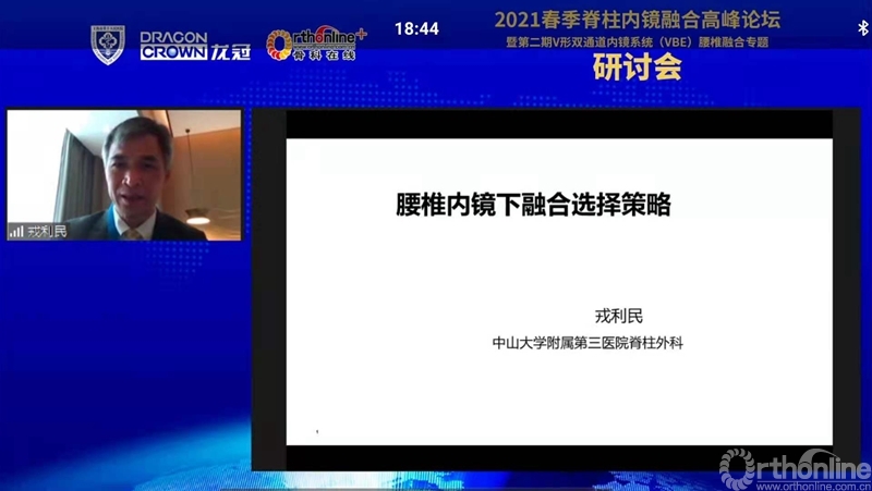 戎利民教授围绕脊柱内镜融合的选择策略展开授课,他客观分析了脊柱内镜融合的适应症及技术特点,对经椎间孔入路和后方入路等不同技术要点进行了点评,并指出内镜融合所存在的问题,认为微创技术是一种选择,要视患者病情及术者自身技术特点做出选择,为患者提供最佳的治疗。