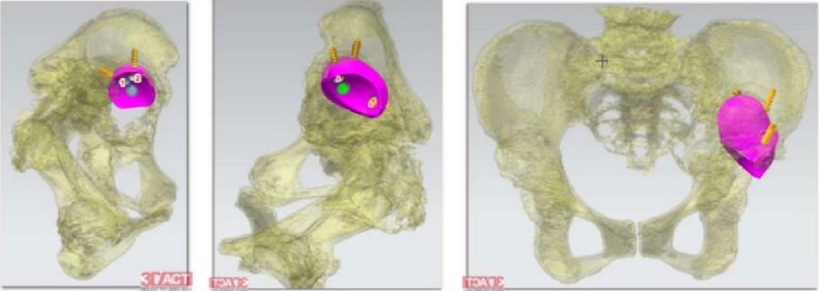 图7 翻修手术规划过程中骨缺损修复补块的安装及螺钉的可视化追踪