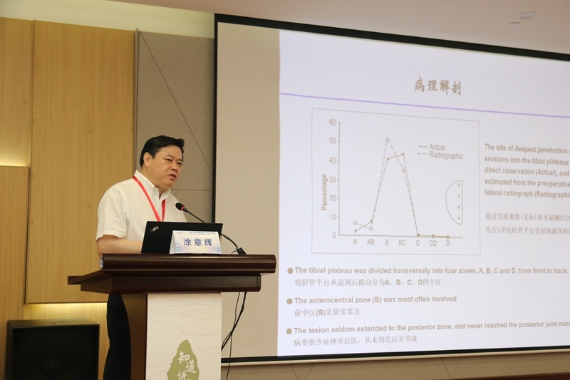 简单的开幕式后,学术授课环节正式拉开序幕。首先涂意辉教授详细介绍了牛津单髁置换手术适应证选择和手术技巧。正确的适应证选择是一台单髁手术获得良好效果的重要前提,如果适应证选择不当,就有可能在术后出现各种严重并发症,给医生与患者都带来无尽困扰。涂意辉教授通过分析近年来国内、国际UKA的手术量,回顾UKA相关文献,总结杨浦医院的临床研究和实践经验,指出了UKA适应证选择的五大要点:(1)相对于全膝关节置换术(TKA)UKA更微创,费用低,康复快,且有相当的假体生存率,在指征符合情况下更优选。(2)髌股关节炎、年龄、肥胖为非UKA手术禁忌;前交叉韧带(ACL)功能不全、严重畸形、非骨对骨接触为非UKA绝对禁忌。可综合考虑患者全身情况、功能要求及手术预期来谨慎选择UKA(3)对侧间室软骨破坏、感染性、炎性关节炎、胫骨高位截骨术(HTO)术后为UKA手术禁忌。(4)低龄患者和高龄患者推荐UKA。对于低龄患者,UKA可更好保留骨量,有利于以后翻修;对于高龄患者,UKA手术风险更低。(5)因高龄或全身情况差而不适合TKA的患者,可考虑UKA