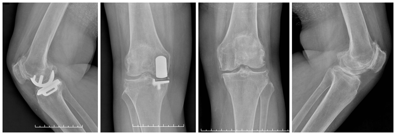 膝关节单髁置换术后的翻修率的一个主要原因是无菌性假体松动。临床上常常用术后X线平片上是否出现透亮带来判定假体是否松动。事实上部分骨水泥型单髁假体,术后x线片常常可见生理性透亮带,容易误诊为假体松动,从而导致不必要的术后翻修,生物型单髁置换假体的推广减少了单髁翻修率,延长了假体的使用寿命。