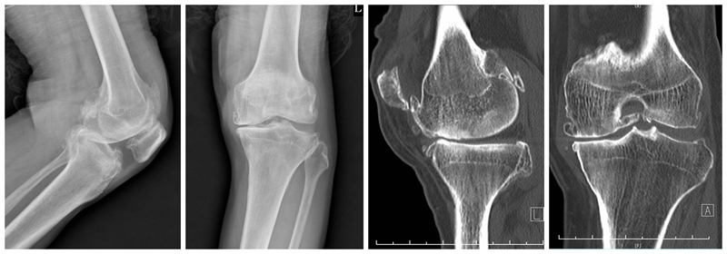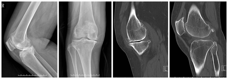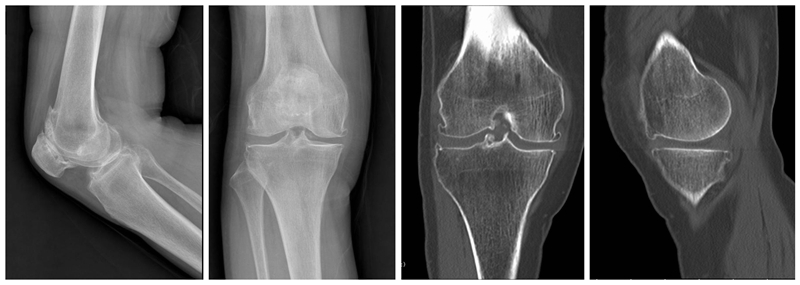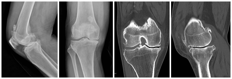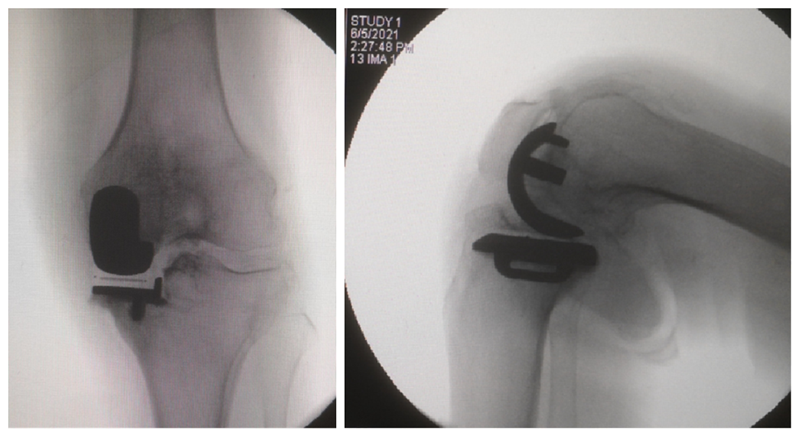 一般认为应力位片非骨对骨接触,可以借助MRI或术中关节镜探查明确原因,对于残留软骨<25%可考虑单髁置换。总体而言,非骨对骨单髁置换手术疗效低于骨对骨单髁置换术。