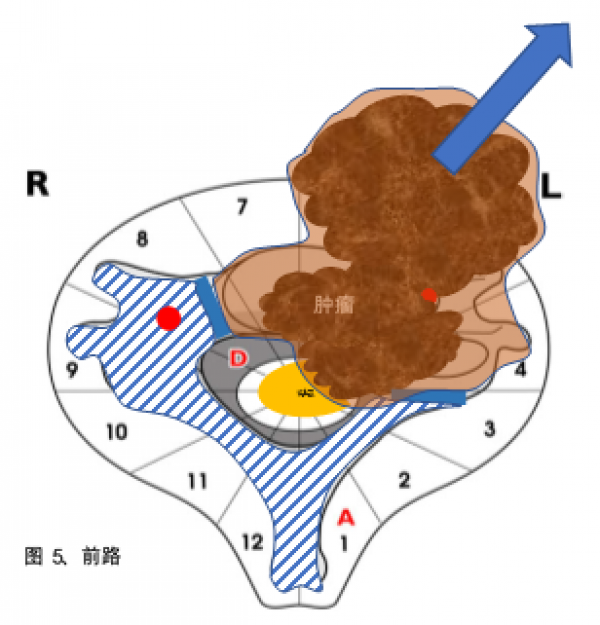 首先从前方入路,切除C2-3和C4-5椎间盘及后纵韧带,切除C3和C4右侧横突孔,游离右侧的椎动脉,切断左侧椎旁肿瘤近端和远端的颈长肌,游离椎旁软组织的肿瘤。