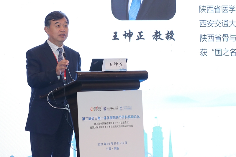 大会名誉主席、中华医学会骨科学分会候任主任委员兼关节外科学组组长、西安交通大学医学部关节外科中心主任王坤正教授代表中华医学会对本次会议召开表示祝贺。他表示在疫情影响下,此次会议虽规模不大,但却汇集了来自全国各地区医院的代表专家,可见水平之高。近年来上海十院发展非常迅速,从开始的名不见经传,到如今突飞猛进,与医院紧抓基层教育,加强与基层医院的紧密连接,积极开展学习新技术、新理念不可分割,希望通过此次会议,能够分享优秀的经验,带动长三角地区关节外科的发展。