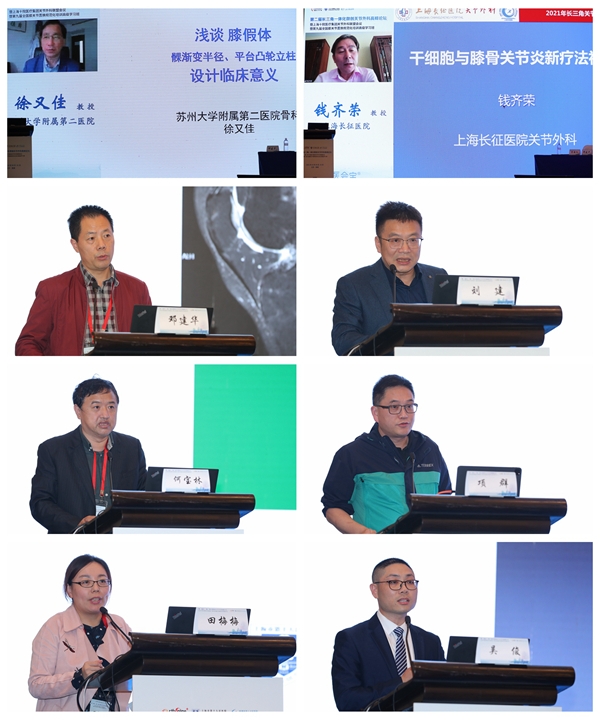 苏州大学附属第二医院徐又佳教授也通过线上进行授课,对于膝关节股骨髁渐变半径假体和胫骨平台凸轮设计假体的临床设计和应用进行了细致讲解。上海长征医院钱齐荣教授通过线上带来了膝关节骨关节炎干细胞治疗经验。干细胞具有成软骨分化、促进内源性软骨再生、抗炎等作用,对骨关节炎有明显的效果。南通市第六人民医院邓建华教授结合病例介绍了膝关节ACL Internal Brace全内重建的手术原理和临床技巧。连云港市第一人民医院刘建教授通过经典病例的分享,讲述了自己对于单髁置换适应证选择的心得体会。作为国内较早开展CR假体的医疗机构,三门峡骨科医院何宝林教授分享了膝关节初次CR假体截骨的个人经验。CR假体具有恢复关节线,减少髁间截骨的优点。全膝关节置换是有效治疗膝骨关节炎的手术之一,盐城市第一人民医院项群教授详细讲解了全膝关节置换手术的手术流程和技术要点,以及多年临床操作心得。大部分医疗机构还普遍存在重手术、轻康复现象。上海十院骨科田梅梅护士长分享了关于关节置换术前、术后康复,改善骨科手术患者结局质量的临床经验,为与会者带来了新的思考和启发。南通市第六人民医院吴俊副主任医师对《中国骨关节炎诊疗指南(2021)》进行了详细解读。