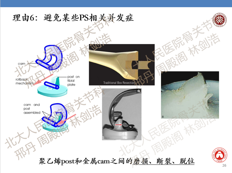 以前关注后方磨损,后来后方设计变薄弱,就可以减轻后方压力,同时促进股骨前移,因此rollback是不连续的ACL缺失导致伸直位后方接触;PCL缺失导致股骨向前移位。