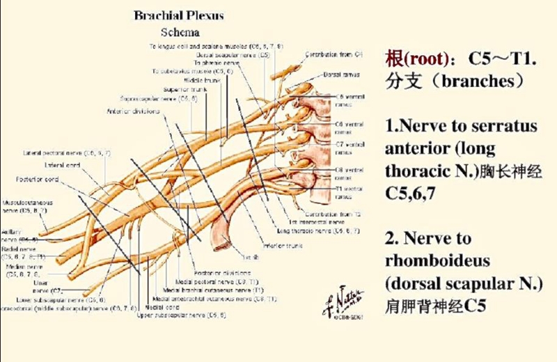 2、锁骨上下部臂丛损伤的鉴别(三块指示肌=胸大肌锁头C56+背阔肌C7+胸大肌肋骨头C8T1)