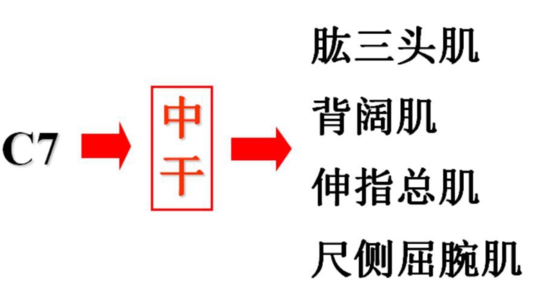 C7=中干,主要功能是伸肘伸腕伸指+背阔肌功能。