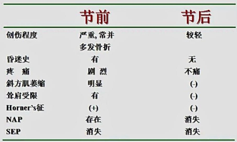 (3)节前,节后鉴别一二个体征的检查(耸肩,Horner征);