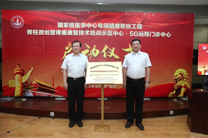 为进一步推进“健康中国”建设,实现优质医疗资源下沉。2022年8月5日,由北京市海淀医院(北京大学第三医院海淀院区)主办,中国农工民主党中央专委会、中国国际投资促进会振兴与发展工作委员会、中国初级卫生保健基金会中西部振兴与发展办公室协办的,国家级医学中心专项精准帮扶工程——脊柱微创暨疼痛康复技术培训示范中心·5G远程门诊中心启动仪式在北京市海淀医院举行。