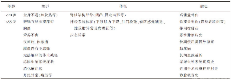 NSLBP诊断过程中应注意筛查与特异性LBP相关的征兆和体征,即红色警示(red flags,RFs)(表1)[44、45],识别警示信号并进行相关的辅助检查,注意相关疾病的鉴别[46~48]。(1级推荐)