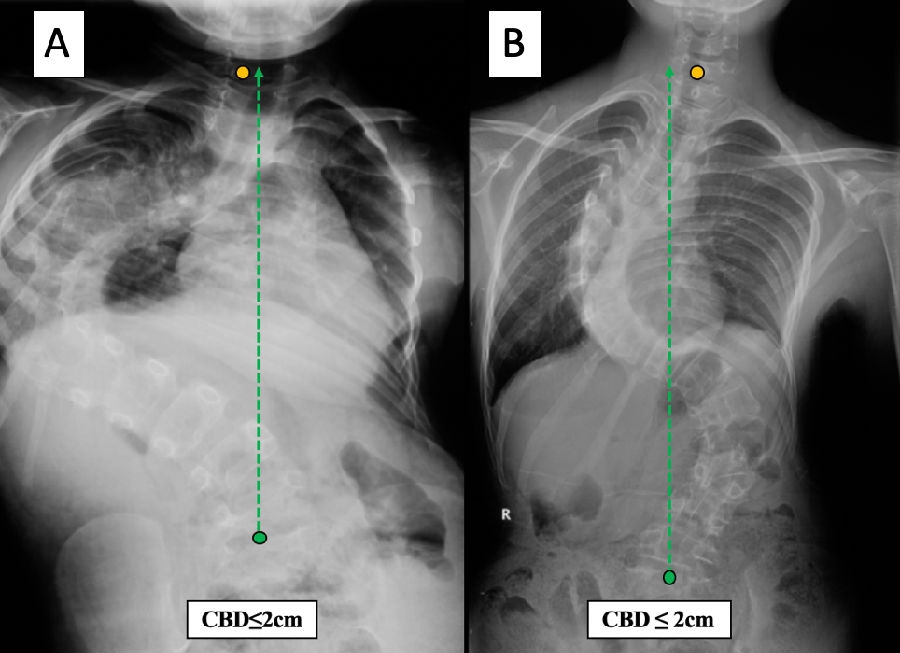 图5. 两例CBD<2cm的重度脊柱侧凸患者