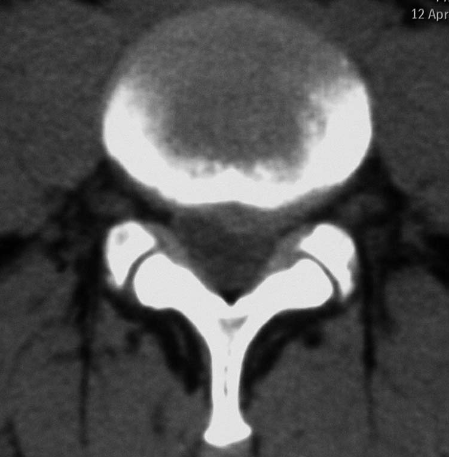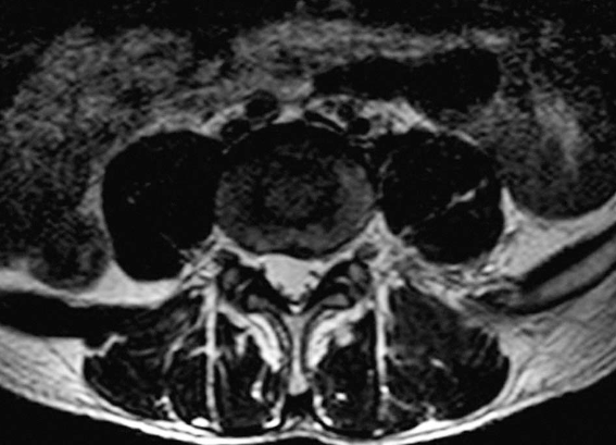 图1 CT轴位片L4~5节段的椎间盘突出:脱垂型