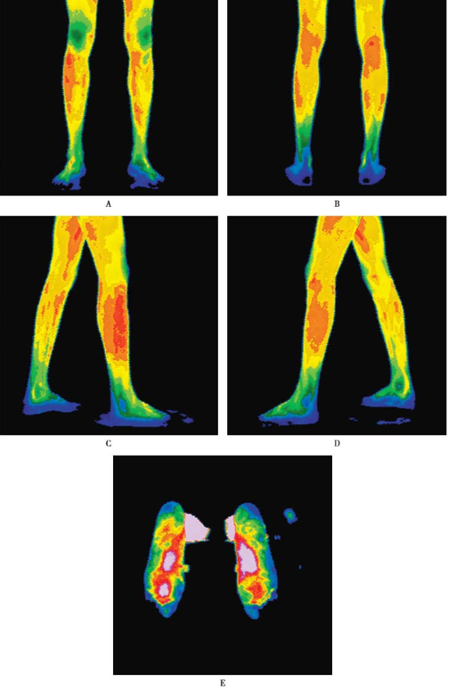 图3 红外热成像显示左侧下肢的皮温明显低于右侧
