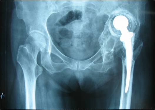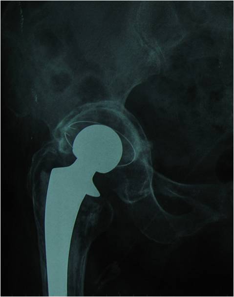 动物实验和人体内取出标本研究已经证实异体颗粒骨在髋臼打压植骨后能够与宿主骨床之间完成骨整合[19] [20]。Van der Donk [22]曾对初次置换和翻修术中打压植骨后异体骨颗粒的转归作了组织学研究。通过手术中对打压植骨部位的活检,他们发现在异体骨再血管化的过程中,破骨细胞去除了大部分的异体骨。随着新生血管组织长入植骨颗粒,可见新生成的类似骨小梁结构的骨组织在异体骨内和新生血管周围形成。然后,这些异体骨、新生骨和纤维蛋白的混合体很快转变成为新的具松质骨结构的骨组织。另一方面,假体的长期稳定性并不完全依赖于异体骨的改建。Linder报道临床结果满意的患者中可发现有大量的异体骨未经改建。作者认为纤维组织与异体骨颗粒交织的复合结构已足够支撑骨水泥假体[21]。目前临床上我们主要通过影像学检查来评估骨整合状况,但通过观察连续骨小梁和植骨区骨密度变化的方法并不完全可靠。这些观察指标与异体骨改建的组织学表现之间的关系尚未建立。但正如前面所述,假体的长期稳定并不完全依靠骨整合,因此即使当宿主骨床和植骨区界面间未能观察到连续骨小梁通过,也不表示手术失败。只有当假体出现持续移位或出现大于2mm的包绕假体的放射学透亮线时,才能认为假体松动。这与我们在本次研究中所观察到的情况一致:除了1例假体明显移位松动外,其余患者假体稳定,髋臼假体及植骨床周围未见透亮线,Harris评分也达到88.6分。