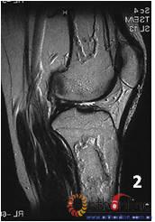 Fig 2 Male, 40 year-old, steroid-associated the bone infarction, MRI showed necrosis involved only in bone marrow, the cortical bone was preserved: (1) the coronal image of diaphysis of femur and tibia;(2) the saggital image of femur and tibia; (3) Transverse section of femur; (4) Transverse section of tibia