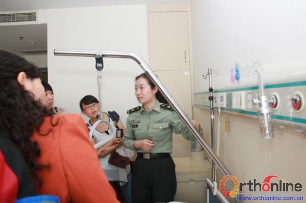 解放军总医院骨科创伤病区护士长高远带领大家参观病房